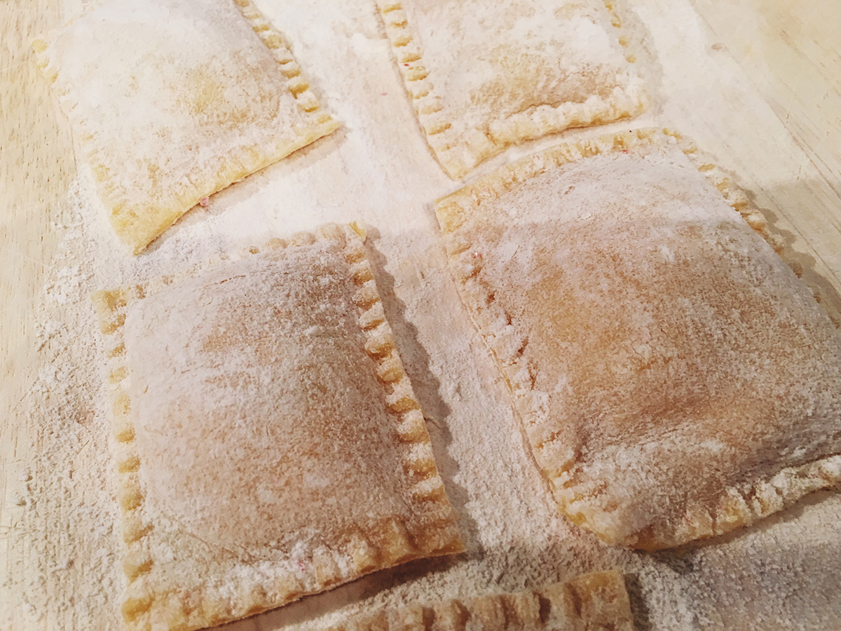 Um selbst Ravioli zu machen braucht man nicht viel Schnick-Schnack, kann man sich aber zulegen, wenn man möchte. Ich habe ein paar Schnick-Schnack Dinge, aber auch nur, weil ich so superfancy bin ;) Das Raviloibrett zum Beispiel nutze ich nicht wirklich… Sieht aber professionell aus, wenn man es sich auf die Arbeitsfläche legt.