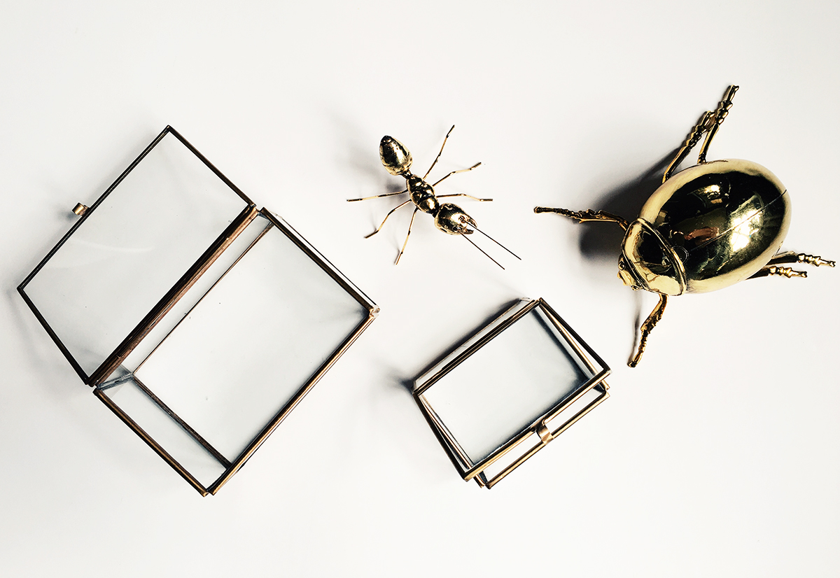 Ich nahm eine goldene Ameise, einen dicken Käfer und zwei Glasboxen mit.