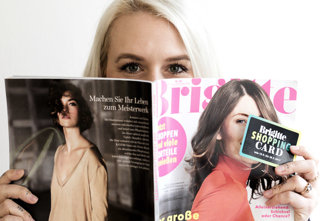 Der aktuellen Ausgabe der BRIGITTE (20/2017, ab dem 13. September erhältlich) ist die BRIGITTE SHOPPING CARD beigelegt, zusätzlich enthält das aktuelle Magazin auch das 38-seitige Shopping-Special, mit dem ihr euch inspirieren lassen und informieren könnt, bei welchem Shop ihr welche Rabatte bekommt oder Gutscheine einlösen könnt. Im Heft werden die exklusiven Vorteile in einem Shopping-Special vorgestellt und auf BRIGITTE.de und der Landingpage bzw. in der BRIGITTE-Android– und iPhone-App wird die Vorteilswelt für die UserInnen und LeserInnen ebenfalls groß aufbereitet.