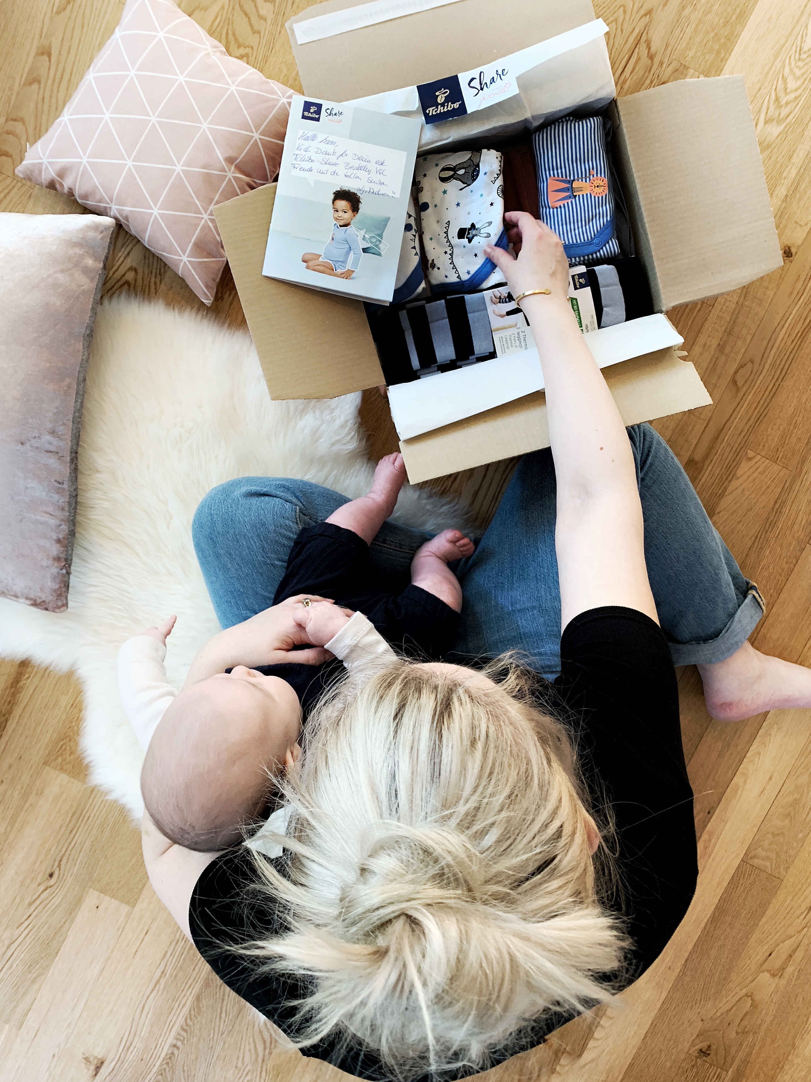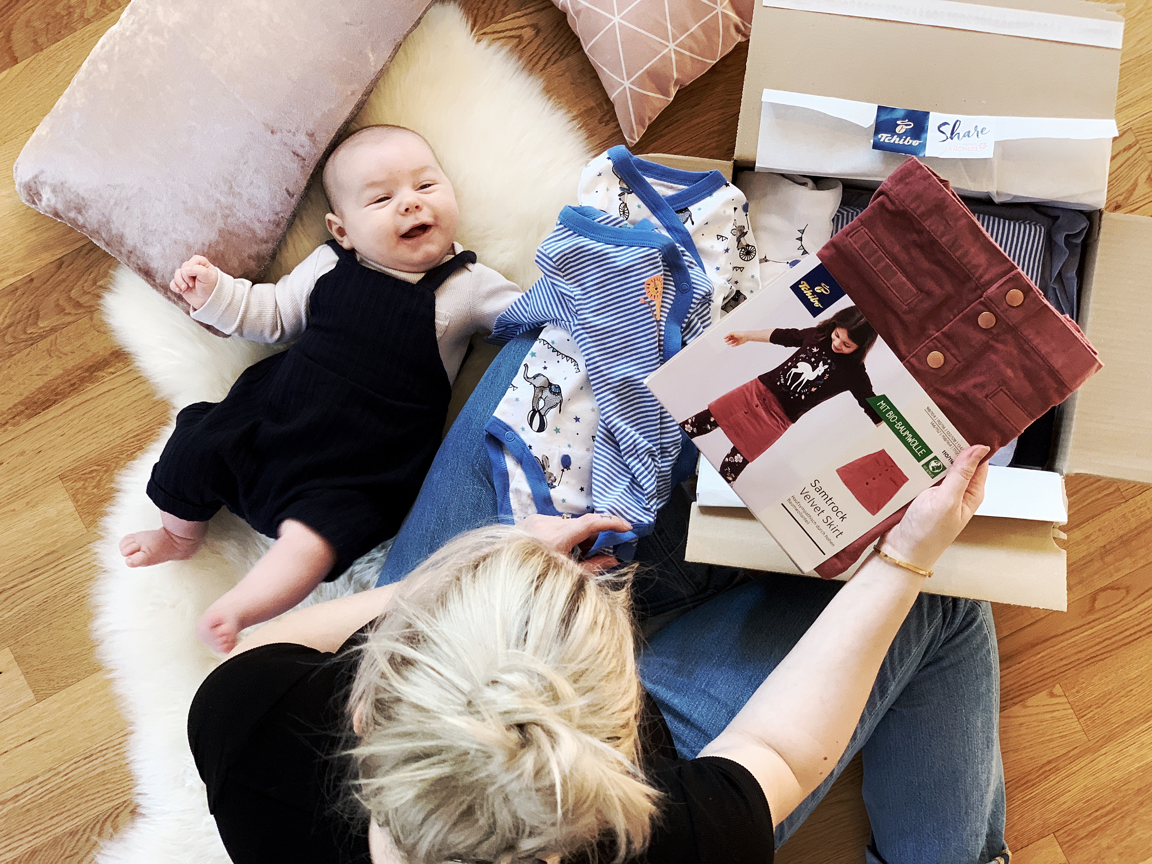 Ich habe Tchibo Share schon vorab getestet und ein paar Kleider für Emma und Paul bestellt. Gerade bei Paul merken wir extrem, wie schnell er aus seinen Klamotten rauswächst: Innerhalb 6 Wochen konnte ich beinahe die gesamte Erstausstattung aussortieren, weil er nahezu über Nacht gewachsen ist. Hey – jedes Kind ist anders und dass er so schnell wächst, hat uns mehr als überrascht! Trug Emma noch sehr lange kleine Größen, ist er da komplett anders. Die Kisten mit aussortieren Stramplern, Bodies und Hosen nimmt Platz weg und der nächste Termin für einen schönen Kinderflohmarkt liegt in weiter Ferne (jep, den letzten Termin für dieses Jahr kann ich aus zeitlichen und beruflichen Gründen nicht wahrnehmen). Herzlichen Glückwunsch!