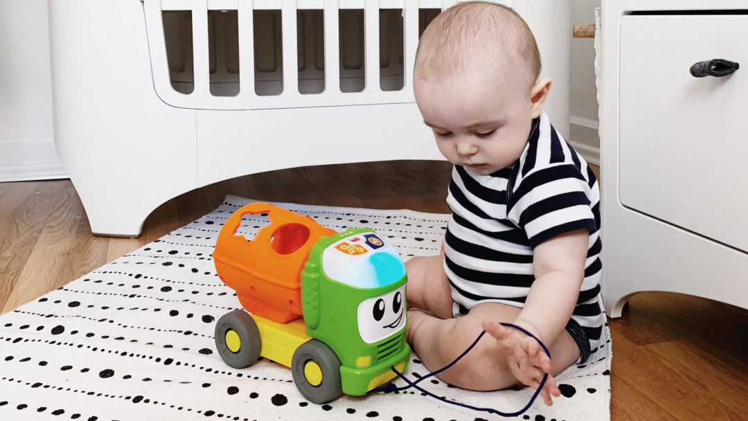 Total in Pauls aktuellen Interessensbereich fällt der bunte Lernlaster von Fisher Price – Balance & Koordination, Sortieren und Gruppieren, das Verständnis von Farben und Formen werden gefördert, zudem spielt er Musik (es gibt auch ein magisches Aus-Knöpfchen ;-) ) und animiert das Kind zum Spielen.